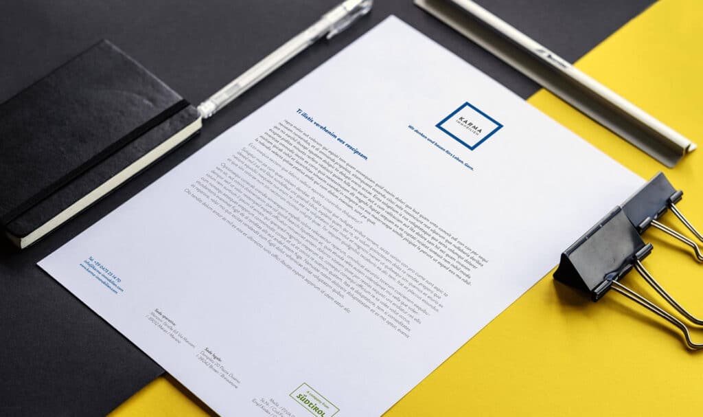 Ausarbeitung sämtlicher Akzidenzen und Drucksorten (u.A. Visitenkarten, Kundenmappen, Blöcke, Briefpapier, Kuverts/Briefumschläge).